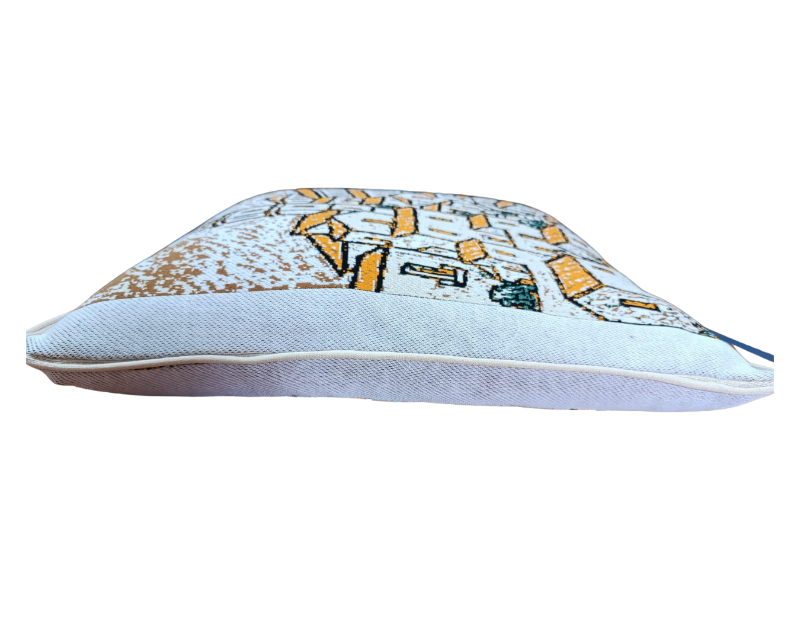 Il nostro cuscino è realizzato al 100% in cotone tessuto lavorazione jaquard con imbottitura in piuma d’oca, e aggiungerà un tocco di arte e comfort alla tua casa. La raffigurazione di Matera in una versione grafica figurativa colorata trasforma questo cuscino in un elemento distintivo per qualsiasi ambiente. La fodera ha una cerniera, il cuscino può essere tranquillamente lavabile, seguendo le istruzioni di lavaggio.